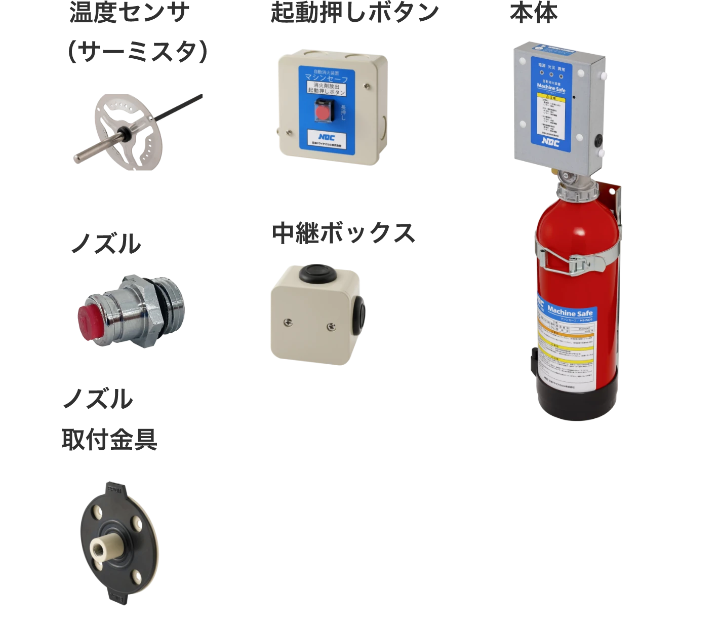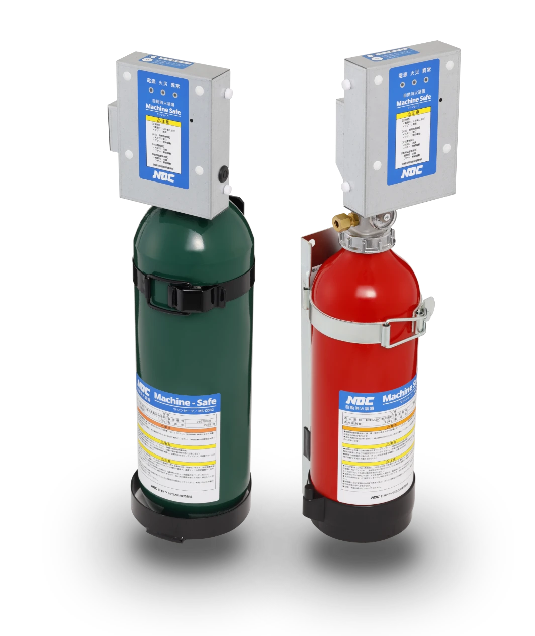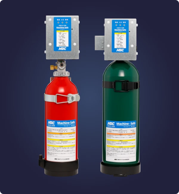 引火性液体やダクト内部での消火に適した「粉末(ABC) 」と、汚損の少ない「二酸化炭素」の2種類の消火薬剤をご用意。防護対象物に合わせた薬剤をお選びいただけます。